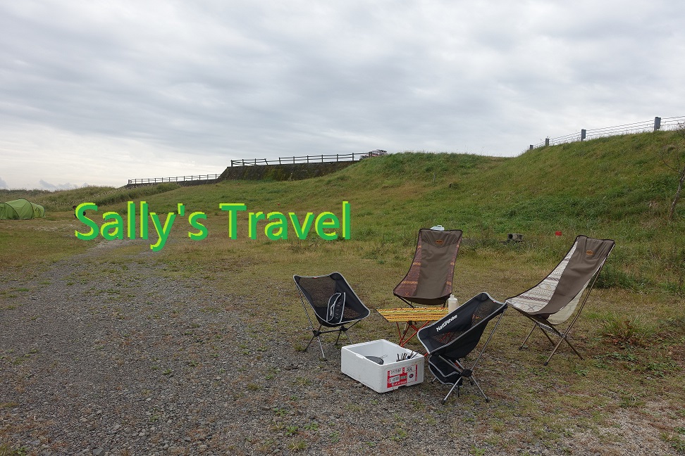 經過非常驚險刺激的一夜,紮營於 [関の江海水浴場] 後方草地