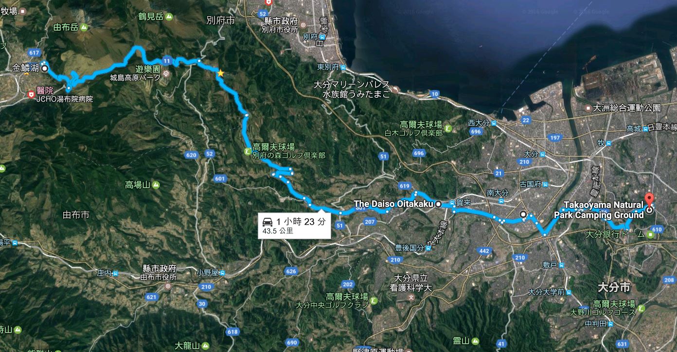 [由布院至高尾山自然公園キャンプ場, 46km 1hr20mins]