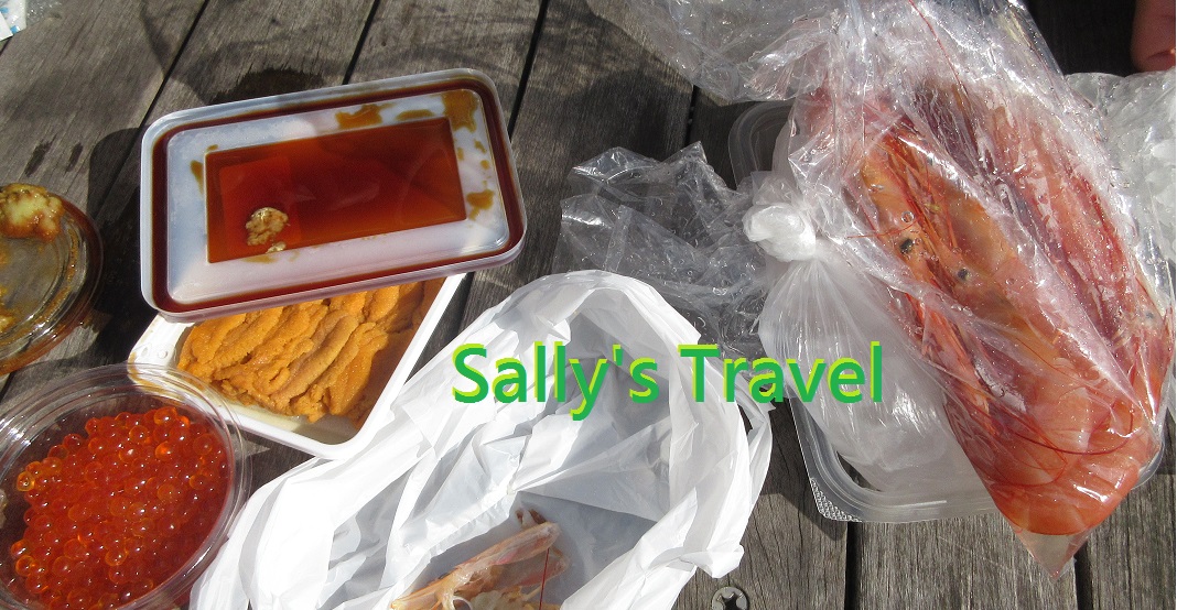 然後看到什麼刺身想吃就買,買完就找個地方大吃一番,哈~~ 結果我們的早餐就是吃刺身飽啊!!