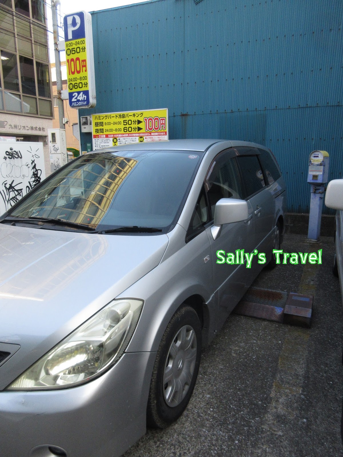 不遲不早,2.5小時後到達了櫛田神社,就在附近找找泊車地點。 100円停泊50mins,足夠我們閒逛了。