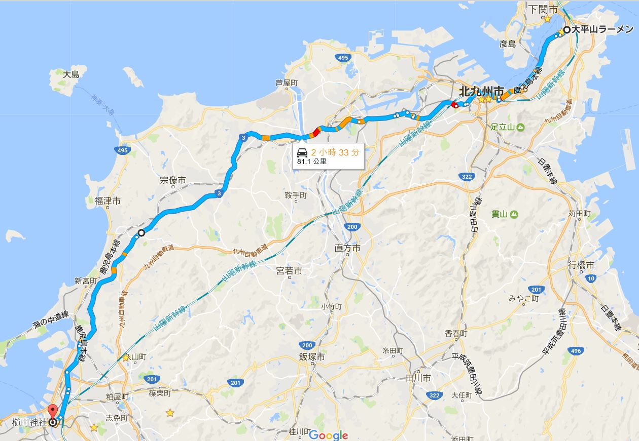 12:00noon 開車去食午餐 [小倉門司港至大平山拉麵店, 0.65km 3mins]