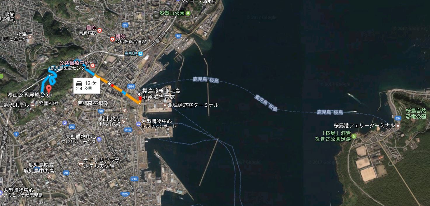 12:45pm [鹿兒島碼頭 => 城山展望台, 2.4km, 15mins]