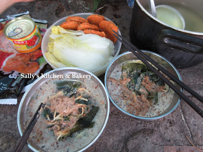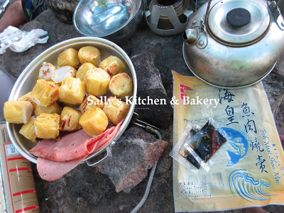 * 烤雞及腸仔是前一晚吃不完的,新朋友不懂得預算食物份量,帶了很多食物吃不完啊!! 希望他們明白下一次不要帶太多食物吧!!