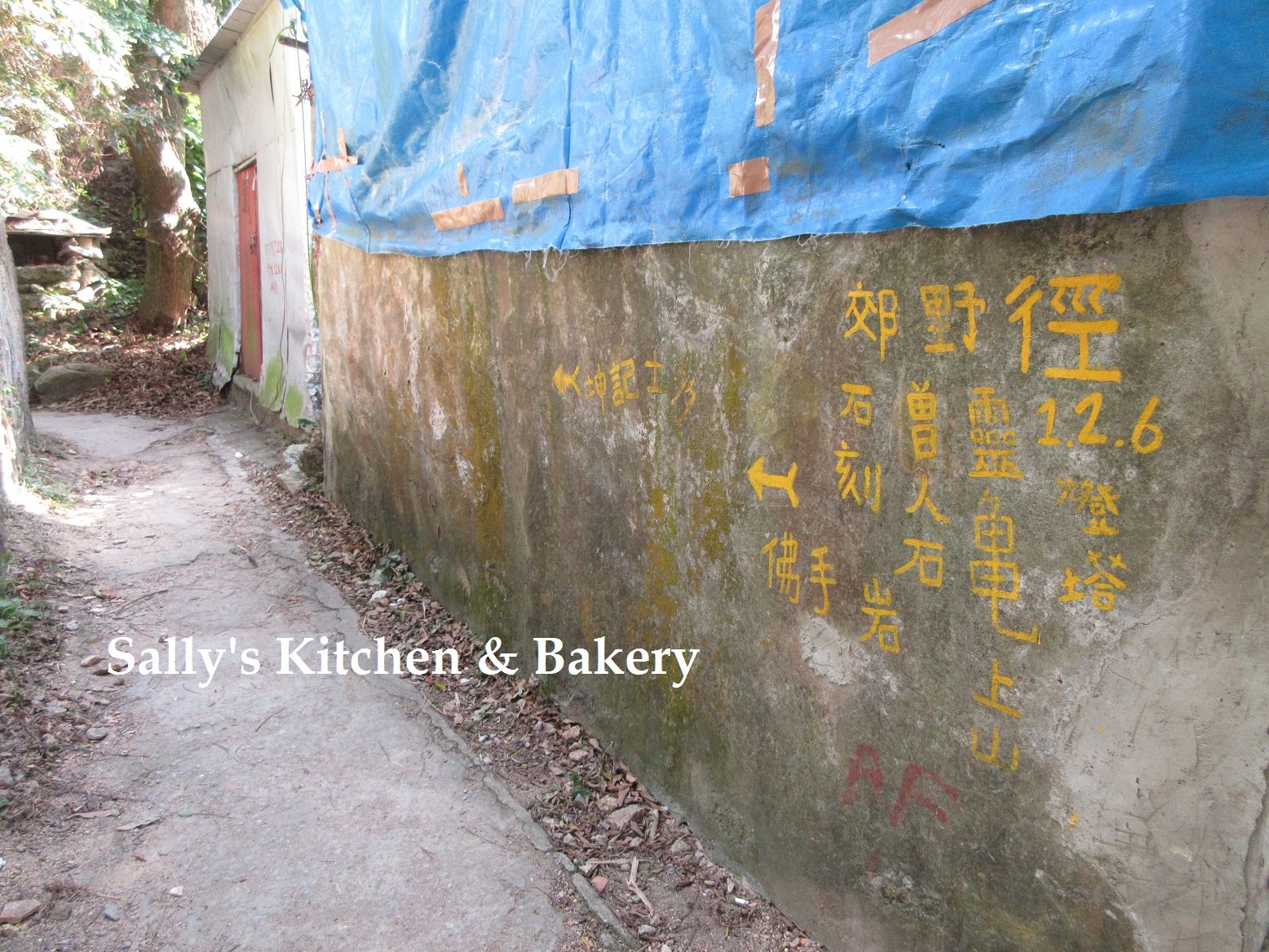 在村屋的牆壁上,亦有指示著一些景點的方向,亦是我們要前往紮營的地點。