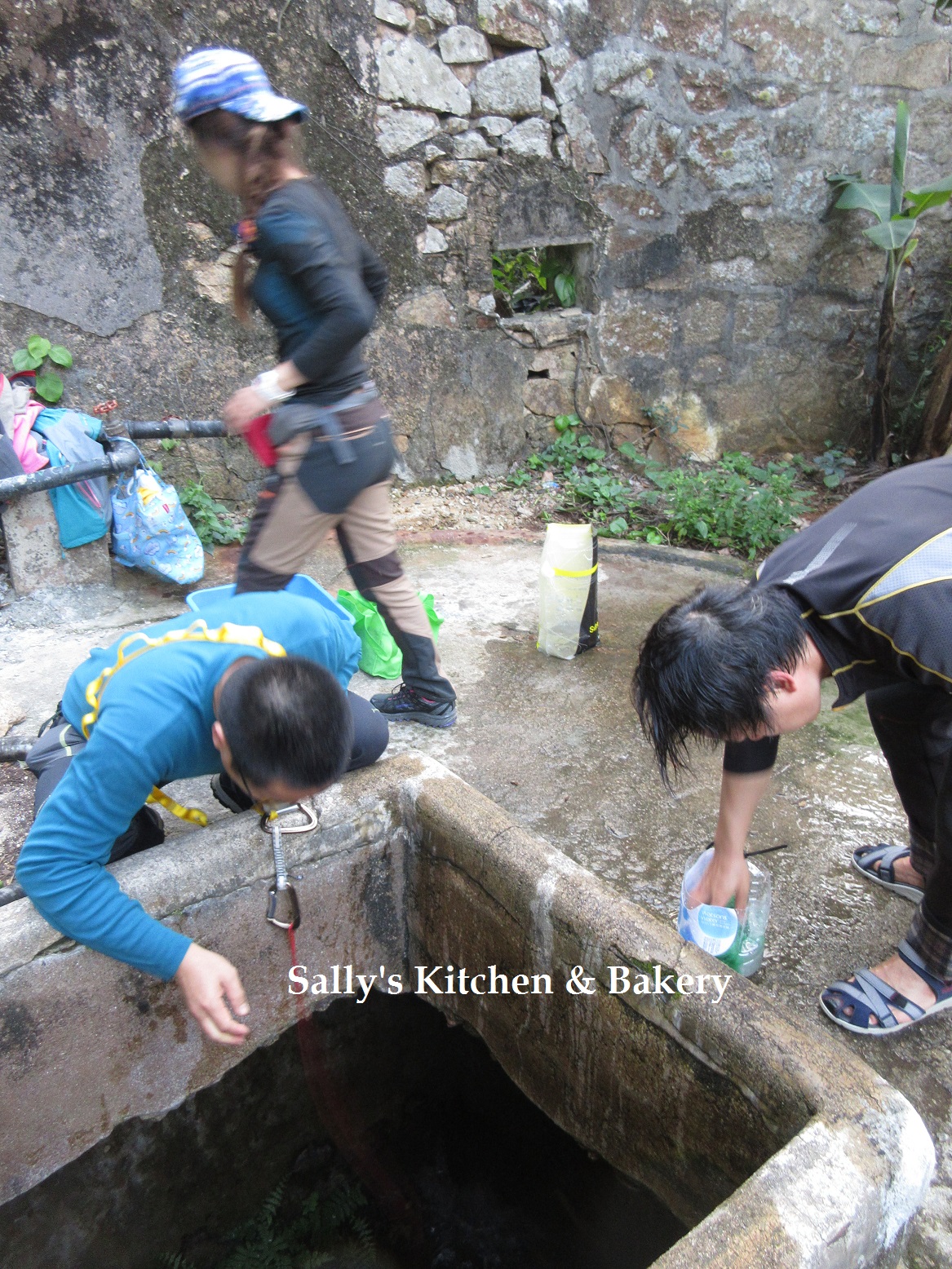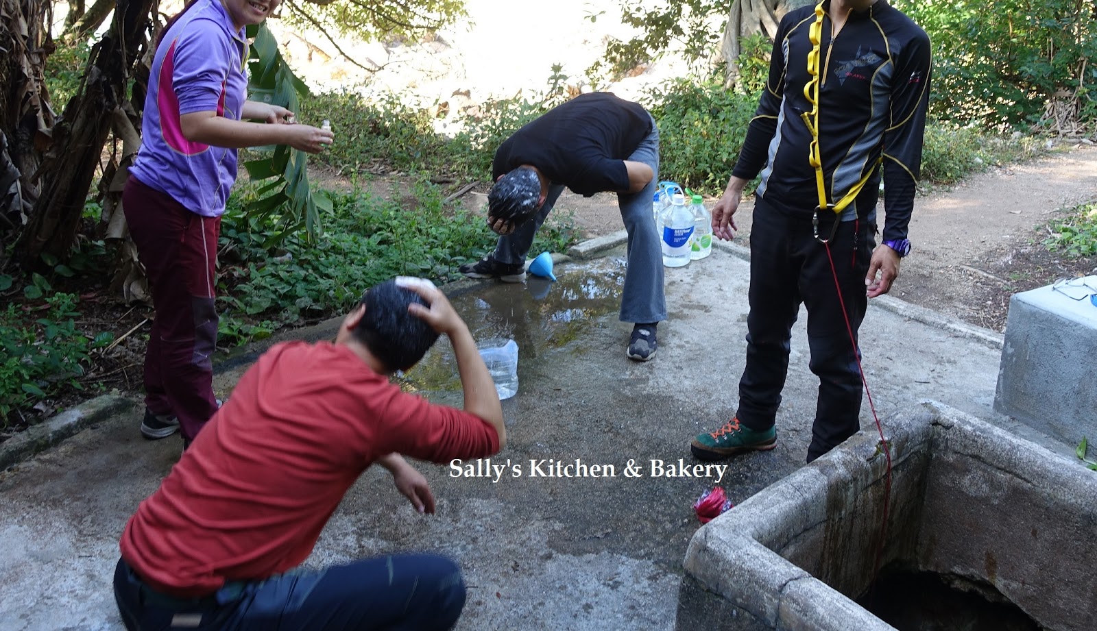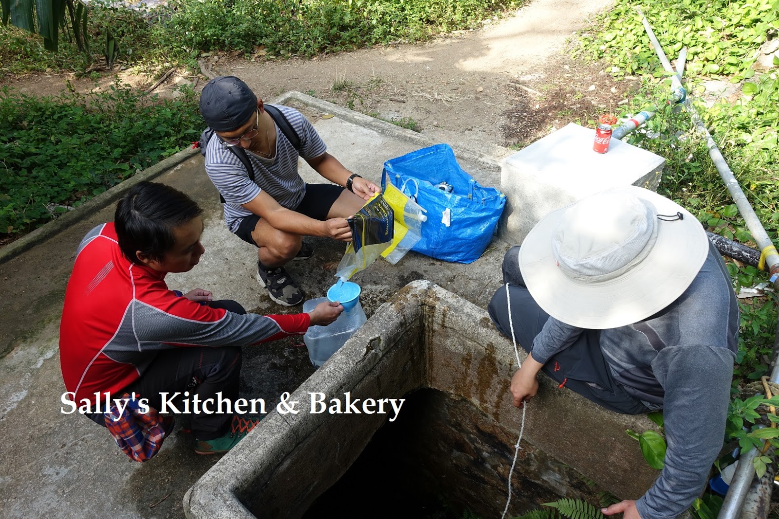 吃過午餐,坤記士多借出水桶及漏斗給我們到碼頭旁邊的水井打水啊!!