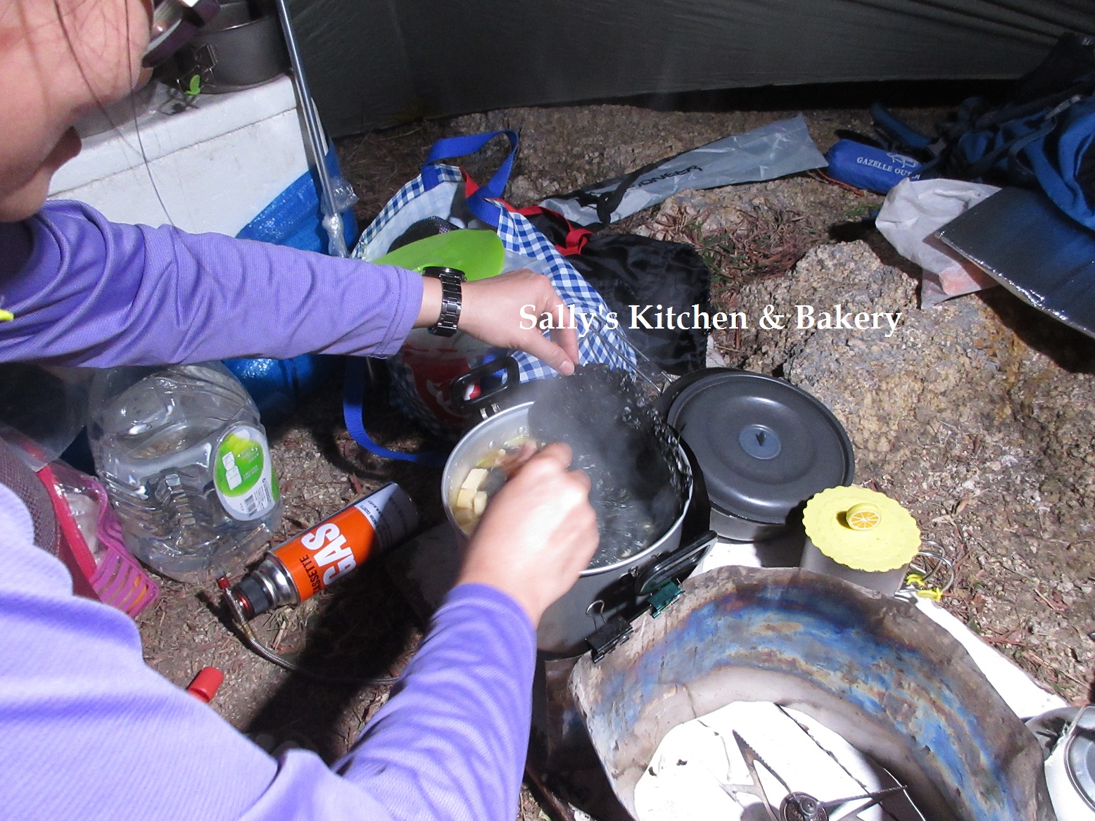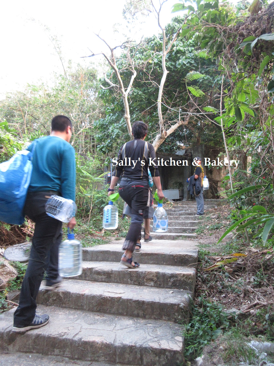 3:00pm 打水完畢便步行回營地去,當然把借來的水桶及漏斗歸還給坤記士多。