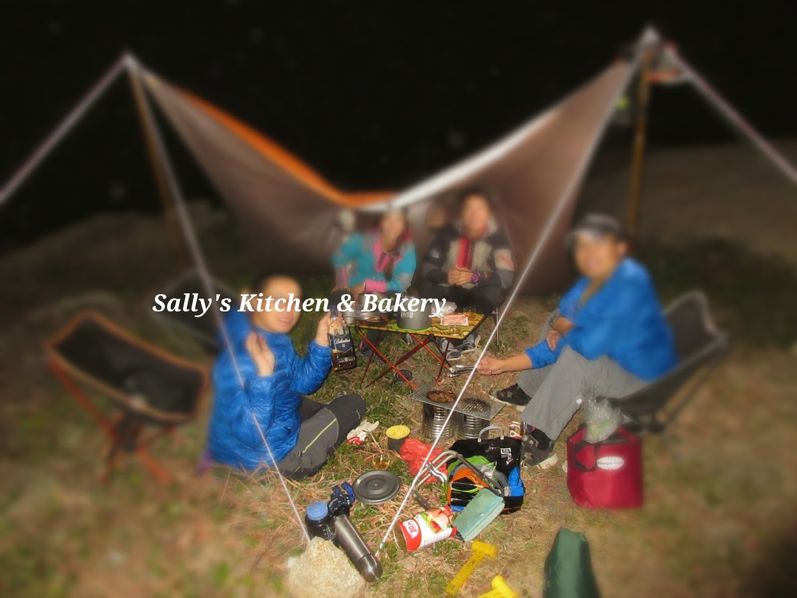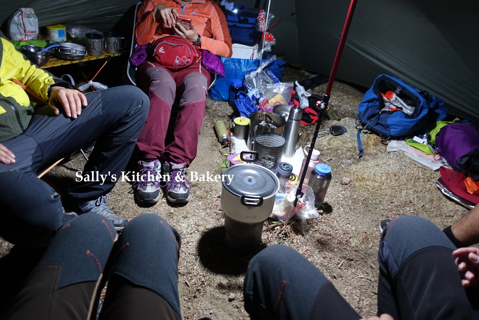 入夜,風好像更大,吹呀吹的大風吹,幸好Mark&Yvonne帶了大本營,我們一行5人躲進去,不用吹到頭暈暈,但他們的內帳床舖便要「晚行朝拆」啊,辛苦了!!