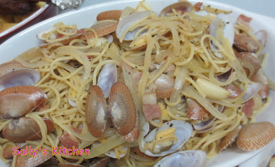 白酒花甲香草意粉 (附食譜)2013年07月15日 | 累積瀏覽 832 最近愛上咗煮呢個意粉,因為真係好鮮甜美味!! 其實唔難煮架, 簡單易煮又好味!! 材料 (4人): 意粉 300g 花甲 1斤 (用鹽水略浸) 洋蔥 一個 (切絲) 煙肉 2-3片(切片) 蒜蓉 2茶匙 香草 2茶匙 白酒 200-250ml 調味雞汁 1-2茶匙 製法: 1. 意粉用滾水煮7mins隔水備用(或跟包裝指示減1-2mins)。 2. 開鑊落油, 油熱後加入煙肉炒香。 3. 再加入蒜蓉及洋蔥炒至洋蔥軟身變透... 看全文