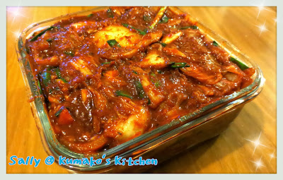 那天韓式大餐的韓式六小碟,其中一款最值得記下的是這辣蘿蔔,因為我跟相公都愛辣亦愛蘿蔔,所以做了3斤蘿蔔,可以放在雪櫃慢慢吃囉!!呵!! 辣蘿蔔是參考這個的: Cubed radish kimchi, 我也是跟著做的,內裡有影片教學,看多幾次才動手吧,肯定成功的。但我買不到韓式辣椒粉,便自己更改了我有的調味品,味道還可以啊!! 下次待我買了韓式辣椒粉再弄一次吧!!! 哈~ 韓式蘿蔔泡菜 깍두기 材料: 白蘿蔔&... 看全文 -