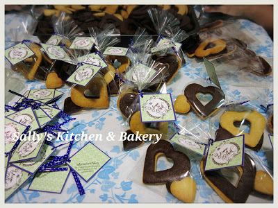 剛過的週末,莎莉烘焙非常非常忙碌! 忙著為朋友婚宴的回禮小禮物做準備! 早在兩個多月前跟這位好友說著她的婚宴,原來她正在苦腦婚宴的回禮小禮物。 我考慮了一會,便厚著面皮的提議可以由莎莉廚房包辦[心心相印回禮小禮物]送給每一位來賓,她想也不想便立刻接受這個提議了, 同時我亦感到非常開心高興得到他們的信任,那。。。我便以這小小的心意,當作結婚賀禮送給他們吧!! 決定了做曲奇的日期在他們婚宴的一個星期前,一對新人亦... 看全文 -
