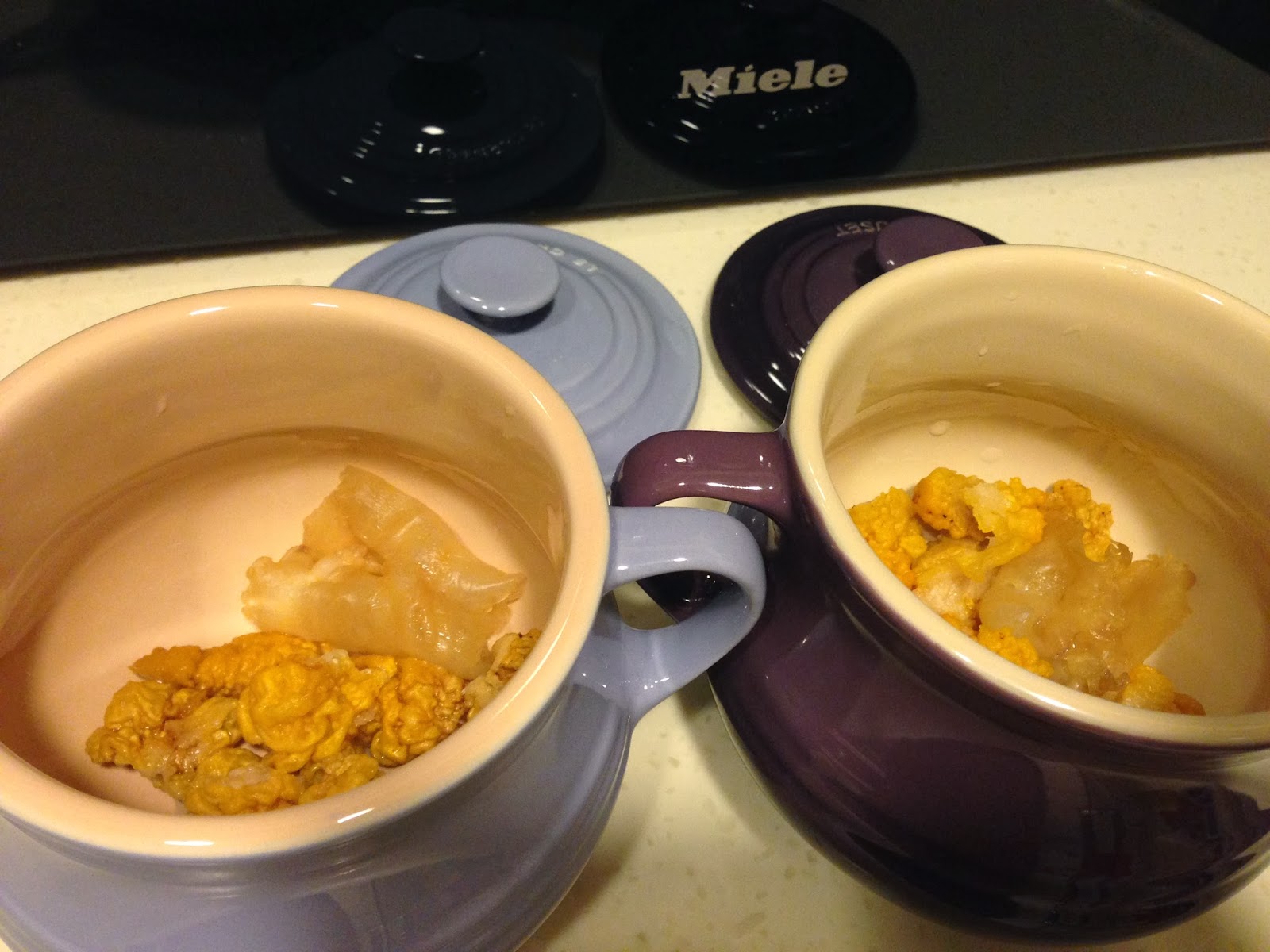 自從買了Miele蒸爐之後, 我便迷上了蒸 & 燉了! 早前姊妹代敗了黃耳, 就跟維維媽來一客黃耳花膠燉鮮奶! 材料; 浸了一天的黃耳, 已發的花膠, 鮮奶及適量冰糖 放入Miele蒸爐燉2小時就完成了 第一次食黃耳, 猜不到跟雪耳的口感不同呢, 好爽口好好吃!... 看全文 -