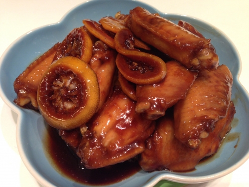 昨晚三父子看罷吾淑吾食教煮的檸檬雞翼後, 便點菜要求今晚要吃了! 材料: 雞翼2磅, 檸檬一個切8片, 薑8片, 片糖2片, 調味料: 生抽2湯匙, 老抽2湯匙, 蠔油2湯匙 做法好簡單, 首先將雞翼洗淨抹乾 用油鑊爆香薑片 之後落雞翼兜至表面略熟 然後落檸檬, 片糖, 生抽, 老抽及蠔油 用中火兜勻至片糖溶後, 蓋上鑊蓋用小火焗片刻 之後再用中火兜至起泡收汁即成... 看全文 -