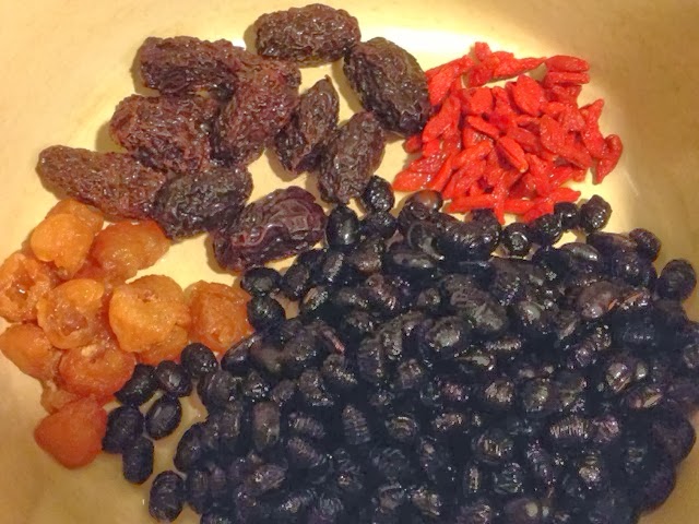 見姊妹們㷛黑豆茶,原來有解腎毒火,提神,化痰止咳 &利尿的功效,一於又跟㷛! 材料: 黑豆1/4斤, 南棗&圓肉約十多粒, 杞子適量 做法: 黑豆先洗淨浸2小時 之後將所有材料加水煲半小時即可 ... 看全文 -
