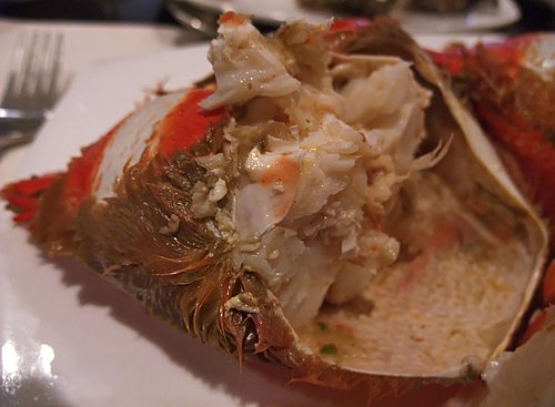 原 來 有 人 當 王 子 係 白 痴 ,乜 呢 度 食 龍 蝦 刺 身 咩?龍 蝦 全 部 都 係 烚 熟 再 雪 凍 攞 出 嚟 架 啦!真 係 新 鮮 運 到 烚 熟 再 攤 凍 唔 會 即 刻 攞 到 出 嚟 呱?OK!就 當 你 得 ,但 之 前 有 唔 少 blog 友 及 朋 友 都 話 龍 蝦 要 等 好 耐 先 出 及 唔 會 refill 噃!Well!龍 蝦 最 後 喺 8 點 3 、大 家 食 咗 2 粒 鐘 先 出 ,而 refill 係 有 嘅!