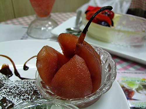 紅 酒 梨 真 係 將 成 個 梨 攞 去 浸 紅 酒 ,聞 到 酒 味 好 香