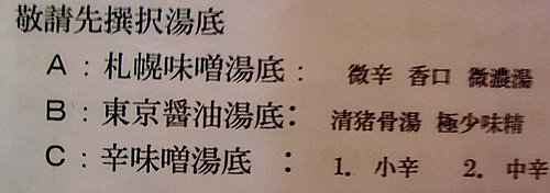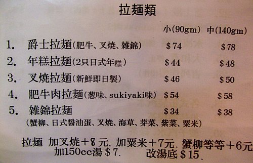 再 揀 拉 麵 種 類 ,1、4、5 最 熱 門 ,小 碗 同 中 碗 只 相 差 $4 ,梗 係 揀 中 碗?但 我 哋 想 試 多 啲 嘢 所 以 揀 咗 細 碗