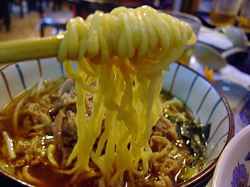 拉 麵 爽 身 彈 牙 ,仲 有 陣 好 濃 嘅 牛 味 及 好 香 嘅 醬 油 味