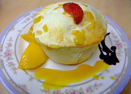 蛋 白 夠 滑 溜 仲 有 芒 果 肉 喺 入 面 ,清 清 甜 甜 凍 凍 哋 幾 好 味 ,仲 可 以 點 芒 果 漿 或 朱 古 力 漿 嚟 食 ,正