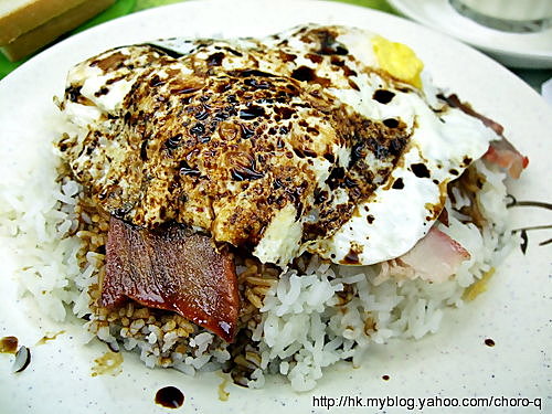 叉 燒 煎 蛋 飯 睇 落 簡 簡 單 單 ,但 口 感 跟 喺 燒 臘 檔 嘅 叉 燒 飯 好 唔 同