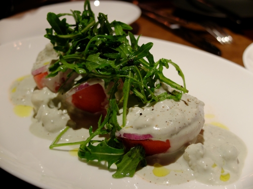 蕃 茄 沙 律 配 紅 洋 蔥 及 梅 塔 格 藍 芝 士 醬 ($120) 蕃 茄 固 然 新 鮮 又 juicy,但 亮 點 還 是 濃 濃 的 芝 士 醬,跟 蕃 茄 同 吃 產 生 出 另 一 種 獨 特 的 味 覺 享 受。