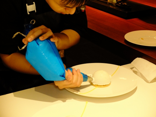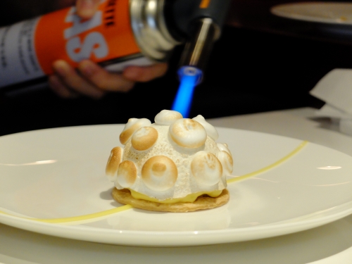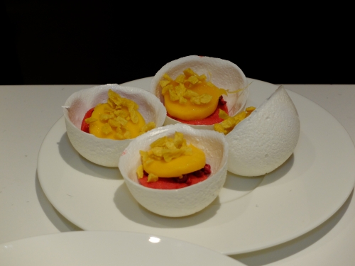 火 焰 雪 山 配 蛋 白 糖 霜 脆 餅、芒 果 吉 士 及 紅 莓 雪 葩 ($80) 是 極 具 心 思 的 製 作,令 我 禁 不 住 留 在 甜 品 檯 前 欣 賞 整 個 making of。