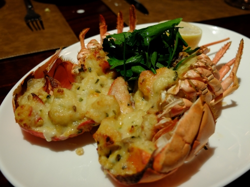 波 士 頓 龍 蝦 半 隻 加 紅 皇 帝 蝦 已 足 以 滿 足 我 這 個 蝦 癡 了,何 況 兩 種 蝦 的 肉 質 皆 嫩 滑 爽 口,燒 得 恰 到 好 處。