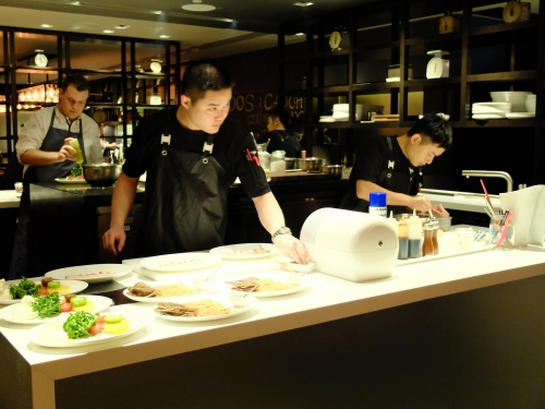廚 房 其 中 一 部 份 是 開 放 式 設 計,以 製 作 頭 盤 及 甜 品 為 主,設 在 餐 廳 的 中 央,食 客 可 隨 時 近 距 離 欣 賞 (或 偷 師) 廚 師 的 手 藝。