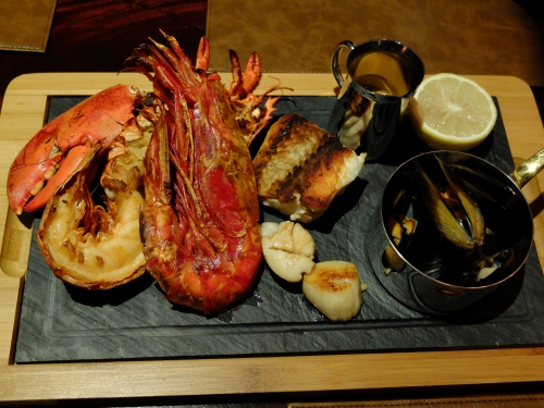 海 鮮 燒 烤 拼 盤 配 是 日 精 選 海 產、波 士 頓 龍 蝦 半 隻 、紅 皇 帝 蝦、藍 青 口 ($380) 單 看 陣 容 很 難 相 信 五 星 級 酒 店 只 收 這 個 價 錢 吧!實 在 物 超 所 值 得 有 點 過 份。