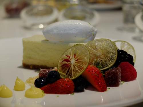 青 檸 芝 士 蛋 糕 配 時 令 鮮 莓 及 薑 糖 雪 糕 ($80) 想 像 一 下,青 檸 芝 士 蛋 糕 上 放 了 薑 糖 雪 糕,一 起 放 入 口,冰 冰 凍 凍、酸 酸 甜 甜,超 刺 激 吧?芝 士 蛋 糕 亦 質 感 一 流,好 輕 好 fresh。