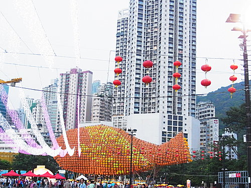 大 魚 身 處 李 錦 記 綵 燈 大 觀 園 內 ,已 經 打 破 咗 健 力 士 世 界 紀 錄 ,成 為 全 球 至 大 嘅 綵 燈 展 品。而 呢 條 大 魚 彩 燈 係 由 香 港 旅 游 發 展 局 主 辦 ,香 港 設 計 師 學 會 、香 港 建 築 師 學 會 及 香 港 設 計 大 使 協 辦 嘅 彩 橙 比 賽 中 勝 出 嘅 作 品。
