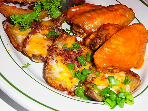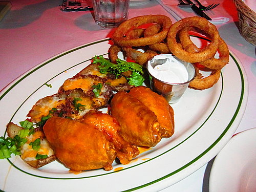 特 色 拼 盤 ($98) 有 齊 紐 約 辣 雞 翼 、焗 薯 皮 及 洋 蔥 圈。就 咁 望 落 去 好 似 唔 錯 . . . 好 似 . . .