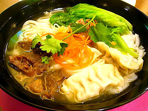 上 面 嗰 碗 係 佢 哋 嘅 最 新 推 介 紅 燒 牛 肉 餃 子 麵 ,個 名 就 普 通 啲 ,但 賣 相 同 味 道 就 頂 呱 呱 啦!我 選 了 清 雞 湯 底 ,牛 肉 輕 輕 咬 一 口 . . . Oh~!唔 駛 趙 、入 口 即 溶 ,餃 子 包 得 又 靚 又 肥 嘟 嘟 . . . 掂 呀!