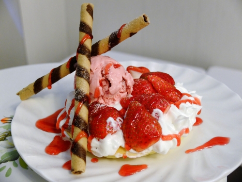 除 了 草 苺 夠 優 質,厚 厚 的 忌 廉 及 鬆 餅 亦 好 好 味,別 以 為 忌 廉 不 值 一 提,最 近 在 九 龍 城 某 間 甜 品 店 試 過 不 香 不 滑 又 無 味 的 忌 廉,感 覺 難 受。但 這 裡 的 忌 廉 香 甜 軟 滑,配 合 甜 甜 的 草 苺、凍 凍 的 Movenpick 草 苺 雪 糕 及 暖 暖 的 鬆 餅,整 件 事 實 在 太 動 人。