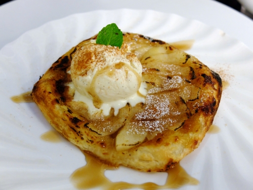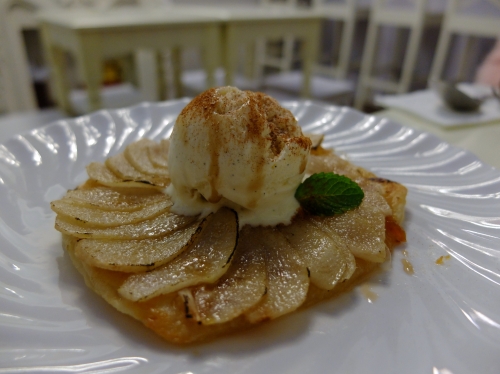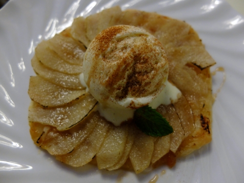 洋 梨 下 還 有 層 酥 皮 批,真 的 要 用 刀 叉 去 享 受 了。我 會 見 議 等 雪 糕 溶 了 一 點,把 少 量 雪 糕 放 在 洋 梨 片 及 酥 皮 上,再 蘸 少 少 雪 糕 汁 一 起 放 入 口,Soooooooo Yummy!