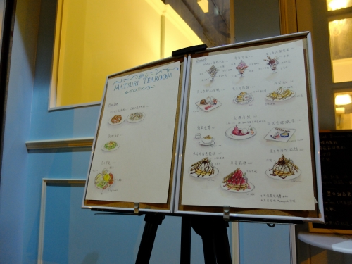 茶 室 開 張 不 久,新 到 招 牌 仍 未 見,吸 引 我 的 其 實 是 置 於 門 外 的 餐 牌,每 一 款 出 品 以 精 細 的 圖 畫 代 替 照 片,部 份 畫 旁 還 有 註 解 以 方 便 客 人。