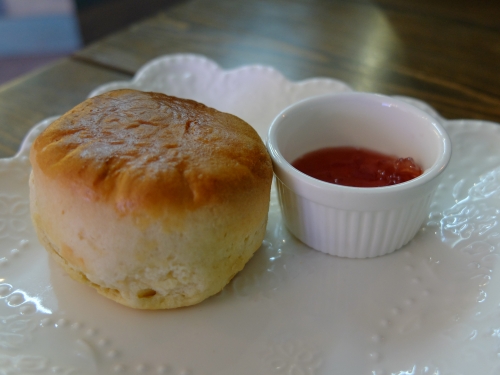 英 式 鬆 餅 配 果 醬 ($14) 是 一 個 小 小 的 驚 喜,看 見 賣 相 一 般,而 $14 的 鬆 餅 還 要 加 上 果 醬,心 中 難 免 不 會 抱 太 大 期 望,拍 了 幾 張 照,拿 上 手 準 備 享 受,咦?還 是 熱 的,質 感 鬆 軟 兼 富 牛 油 香,Good 啊!王 子 選 了 那 種 果 醬 去 配 鬆 餅?我 選 紅 酒 啤 梨,甜 度 頗 濃,跟 鬆 餅 是 絕 配。