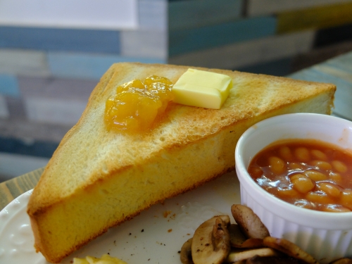 厚 多 士 真 的 很 厚,王 子 選 了 那 種 果 醬?我 選 芒 果,甜 甜 的 味 道 天 然,放 在 熱 烘 烘 的 多 士 上,醬 香 融 入 包 中,動 人!而 旁 邊 的 牛 油 有 點 邪 惡,所 以 置 於 一 旁 算 了,Sorry!