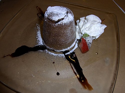 朱 古 力 布 甸 ( 即 係 心 太 軟 ),用 透 明 玻 璃 碟 型 到 極。
