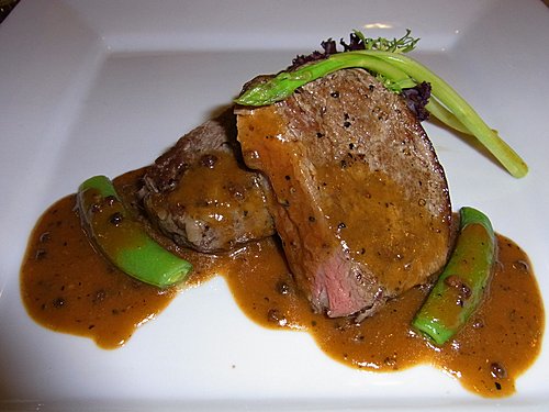 安 格 斯 牛 柳 配 干 邑 胡 椒 汁 賣 相 一 般 ,但 水 準 夠 高。