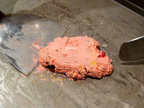 揀 好 配 料 後 ,美 女 會 為 你 於 冷 冷 的 鐵 板 上 炒 雪 糕。