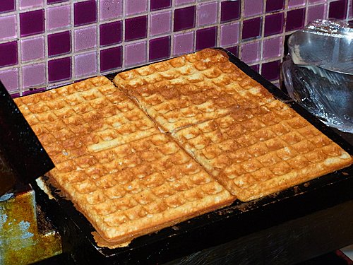 窩 夫 必 食 ,睇 住 佢 出 爐 熱 脆 脆 ,就 咁 食 香 甜 熱 烘 烘。
