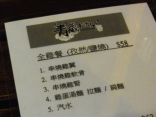 青 藏 牛 肉 麵 好 似 無 全 牛 餐 ,卻 有 全 雞 餐 ,有 趣!