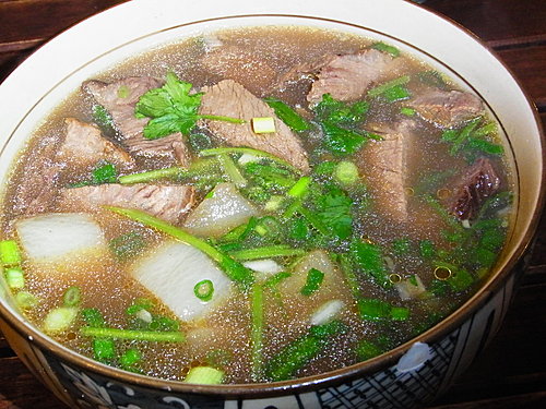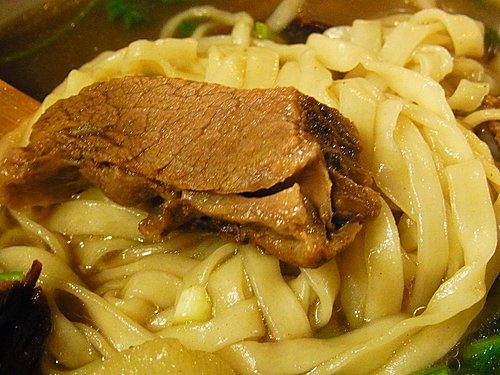 青 藏 牛 胸 腩 麵 可 以 揀 拉 麵 、扁 麵 或 刀 削 麵 ,自 己 選 咗 扁 麵 ,湯 底 有 鮮 濃 牛 骨 香 ,熬 得 夠 火 候 ,香 蔥 及 芫 茜 亦 加 咗 唔 少 ,令 湯 味 更 香 濃 ,而 扁 麵 亦 幾 爽 滑。But . . .
