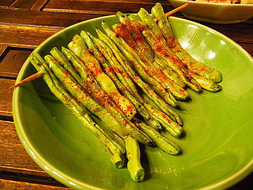 青 藏 岩 鹽 烤 雲 豆 串 ($23) 唔 夠 爽 嫩 ,但 調 味 水 準 OK!