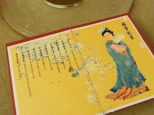 早 排 喺 王 宮 個 Facebook 講 過 ,有 酒 店 送 咗 一 圍 中 菜 豪 華 晚 宴 俾 王 子 (係 呀!一 圍 呀!),有 啲 受 寵 若 驚 ,因 為 之 前 只 有 一 個 大 型 beauty 網 站 至 得 到 如 此 禮 遇。食 乜 東 東 呢?其 實 王 子 係 收 到 皇 家 太 平 洋 酒 店 的 邀 請 ,到 佢 哋 的 宴 會 廳 享 用 由 現 在 到 四 月 底 所 舉 行 的 楊 貴 妃 宴。