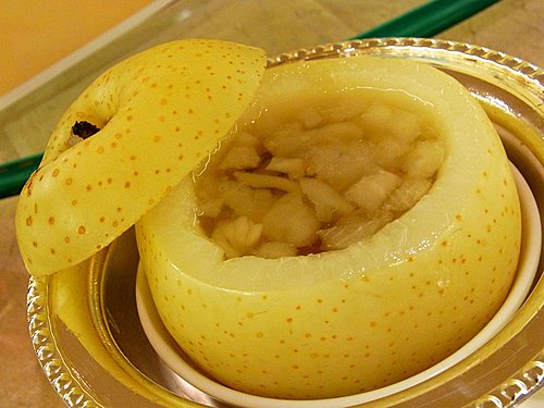 貢 梨 炖 雪 蛤 紅 蓮 清 甜 滋 潤 兼 帶 有 濃 濃 梨 子 香 ,比 市 面 平 時 食 到 的 冰 糖 燉 雪 蛤 ,味 道 天 然 得 多 了。