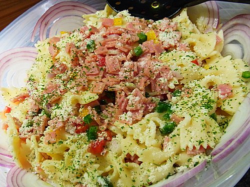 火 腿 三 色 椒 蝴 蝶 粉 有 咬 口 ,mix 得 亦 好 味。
