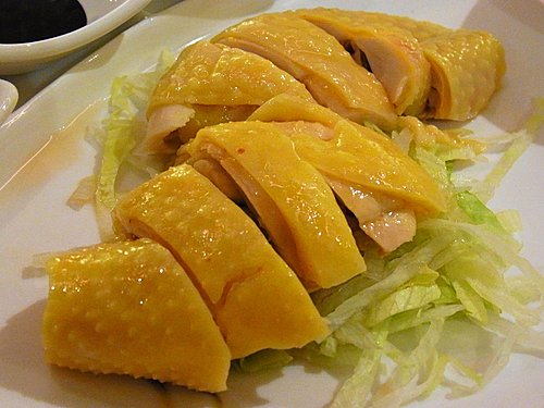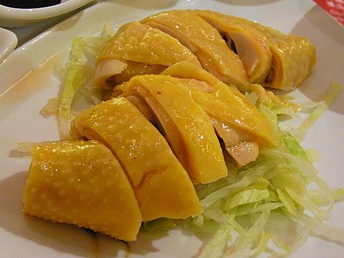 出 面 食 海 南 雞 已 絕 少 連 皮 食 ,雞 皮 唔 係 無 味 就 係 韌 到 飛 起。但 呢 度 的 雞 皮 滑 溜 爽 脆 有 油 香 ,皮 下 脂 粉 較 少 ,一 塊 塊 就 咁 食 又 得 ,連 肉 成 嚿 食 亦 得 ,得 咗!而 雞 肉 亦 一 如 所 料 ,肉 質 鮮 嫩 爽 滑 有 雞 味 ,唔 駛 蘸 汁 已 夠 晒 味。
