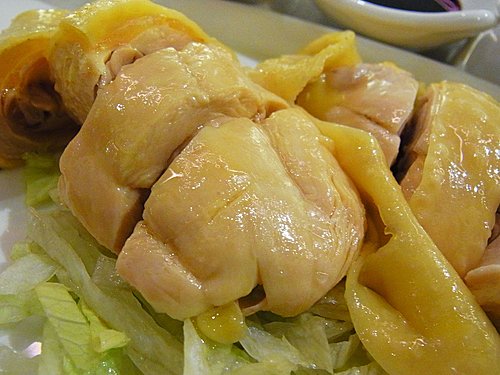 海 南 雞 用 三 黃 雞 ,成 隻 髀 位 已 去 骨 ,睇 見 就 口 水 流。