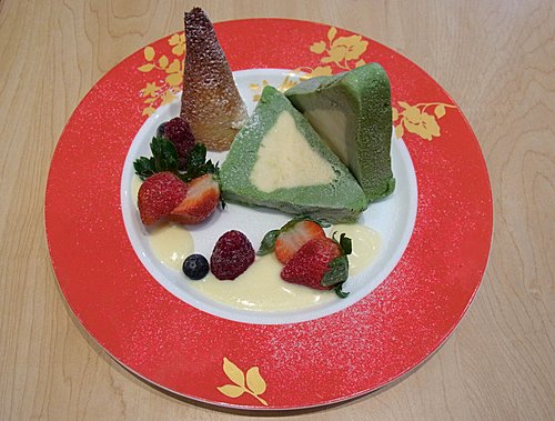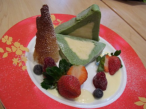 歡 樂 聖 誕 屋 ($83) 由 日 本 京 都 抹 茶 葉 製 造 的 抹 茶 雪 糕 及 呍 呢 嗱 雪 糕 組 成 ,伴 以 幾 款 鮮 莓 及 杏 仁 脆 筒。